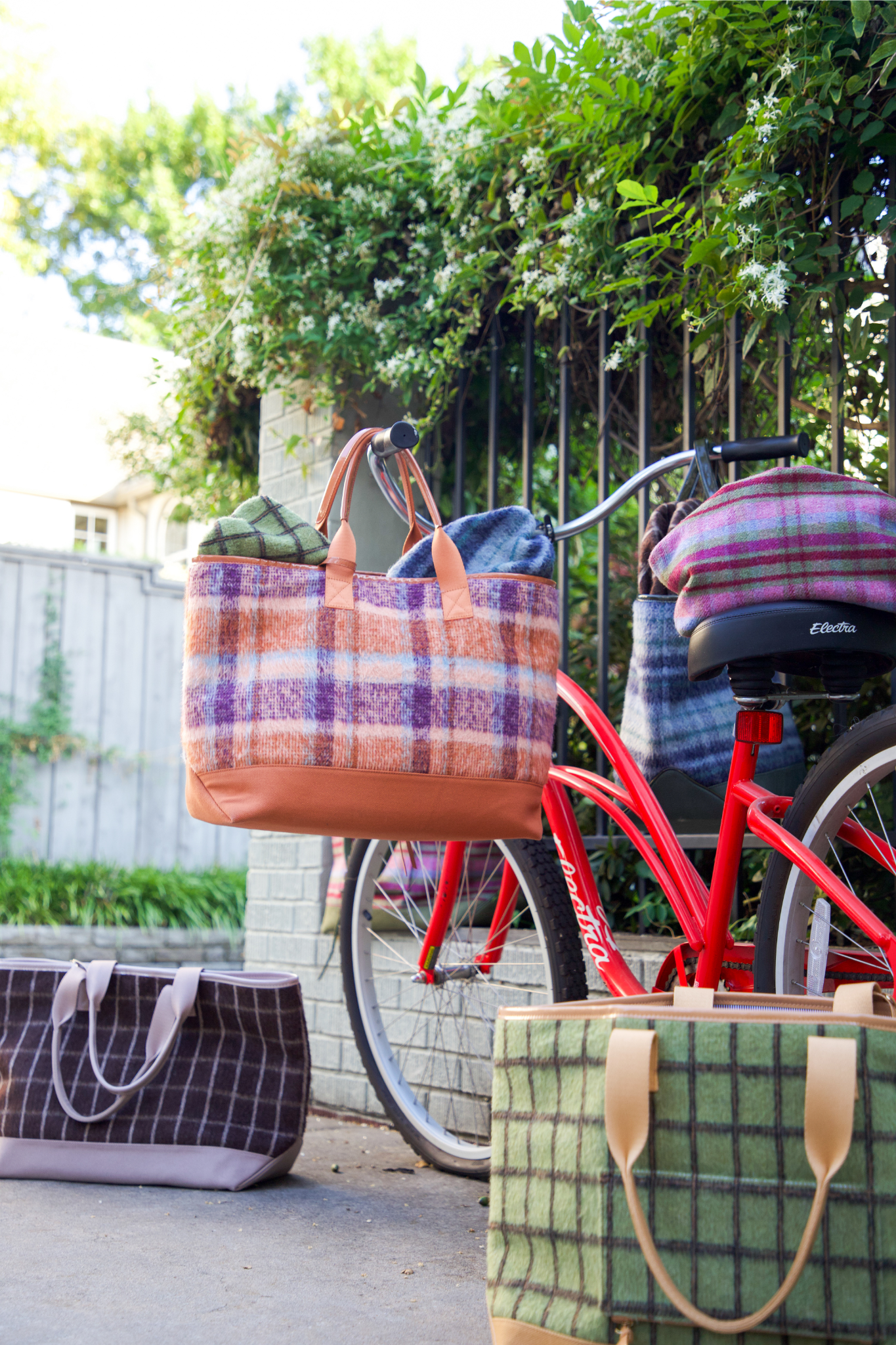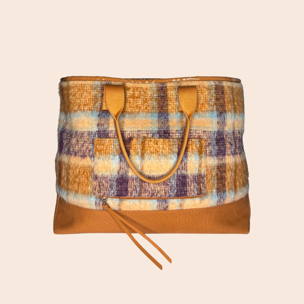 - Playful interior: pinstripe lining that contrasts and ties back to the plaid exterior